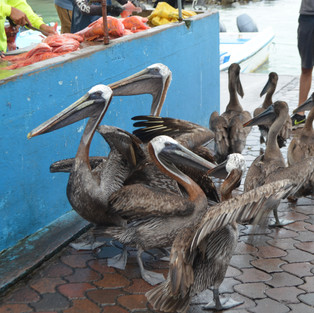 Today we woke up early to get on a boat for 2 hours. I didn’t get sick but I got soaking wet and cold- I was in the worst splash zone. Immediately when we arrived we went to Casa De Nelly to change and then went to a fancy hotel's outdoor restaurant. They served us bread in really fancy baskets-definitely the prettiest meal we've had. Across the street you could see the many, many sea lions on this island. It’s smaller but has more of an island feel than Santa Cruz.