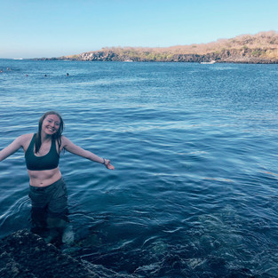 Then for lunch we went to the same place and it was also very good again. We had ice cream and sat on the beach behind the sea lions before it was time to go to Tijueritas. This was behind the interpretation center and up a trail. First we started by climbing way above the little alcove to get a good view looking down at it. I got to see the iconic Galapagos rock in the middle of the ocean and it looked really cool. Then we headed down to a closer platform next to a statue of Darwin. Once we finished up I had a chance to go swimming in the cove. I jumped in in my shorts because I didn't have a swimsuit-this was kinda fun- it was so so so cold and when I first got in I got a little panicked. I did swim up in front of a sea lion that was on his back blowing bubbles. Daniella came to get me but then I told her I've never snorkeled and she asked a lady if I could borrow her gear! This was so special and cool for me to do here. I didn't see much but fish but at first I was nervous and Daniella jumped in and swam with me until I was comfortable and then it was really fun for the few minutes I got to do it. We had to run back to the science center to make it to the presentation all soaking wet lol. This was a really special day for me.